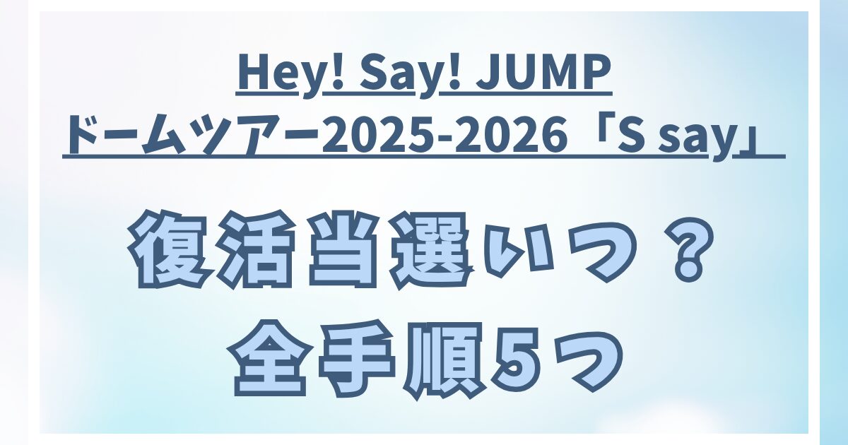「Hey! Say! JUMPドームツアー2025-2026 復活当選いつ?全手順5つ」まとめ