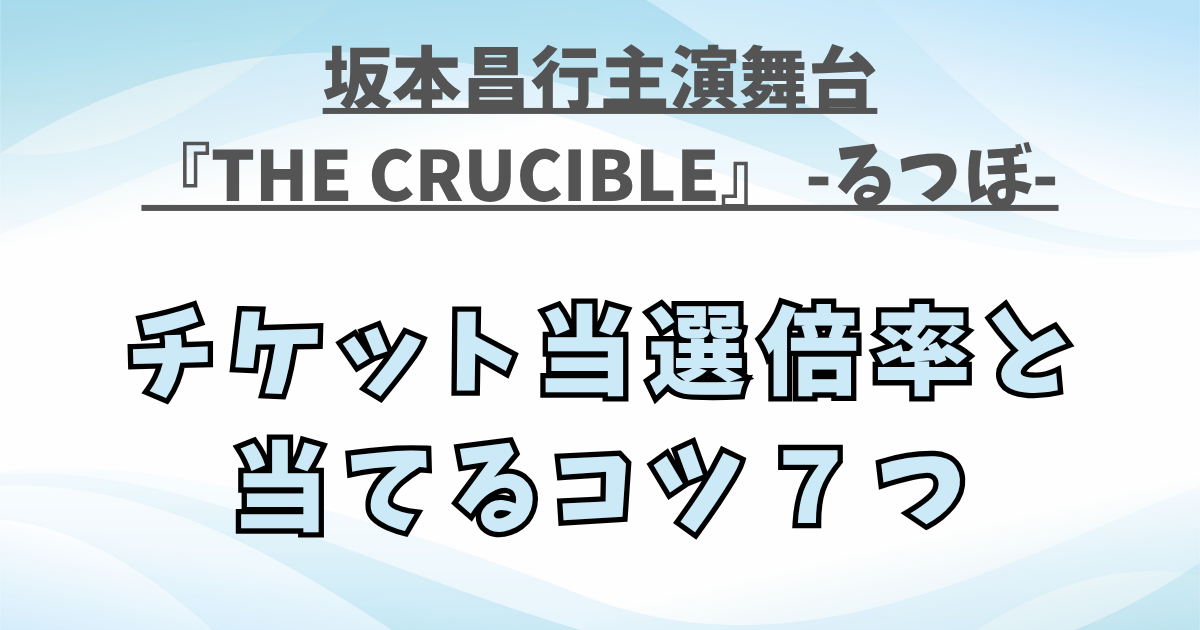 坂本昌行さん主演舞台「るつぼ」の当選倍率についてですが、当サイトが計算した結果