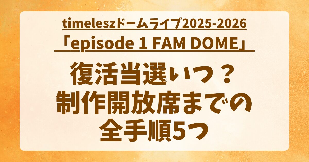 timeleszドームライブ2025-2026 復活当選いつ?制作開放席までの全手順5つ