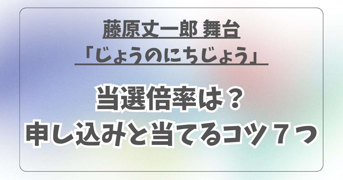 藤原丈一郎さんの舞台「じょうのにちじょう」はかなりの高倍率ですが、しかし具体的な行動を積み重ねれば、当選のチャンスはしっかり掴めます。