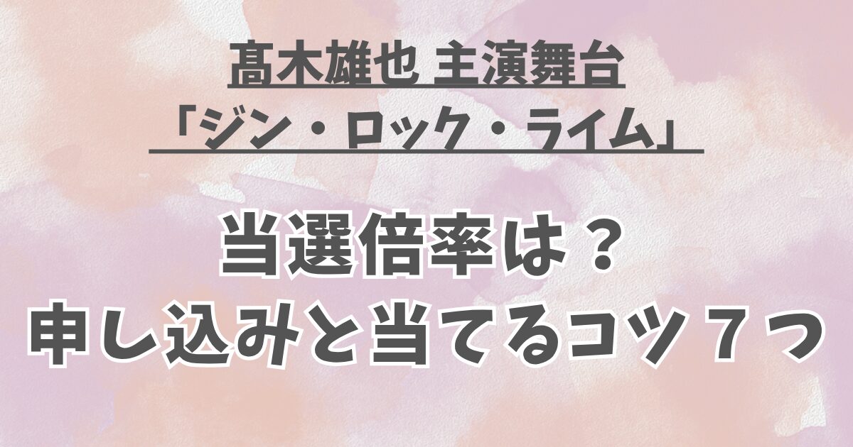 髙木雄也さん主演舞台「ジン・ロック・ライム」の当選倍率についてですが、当サイトが計算した結果