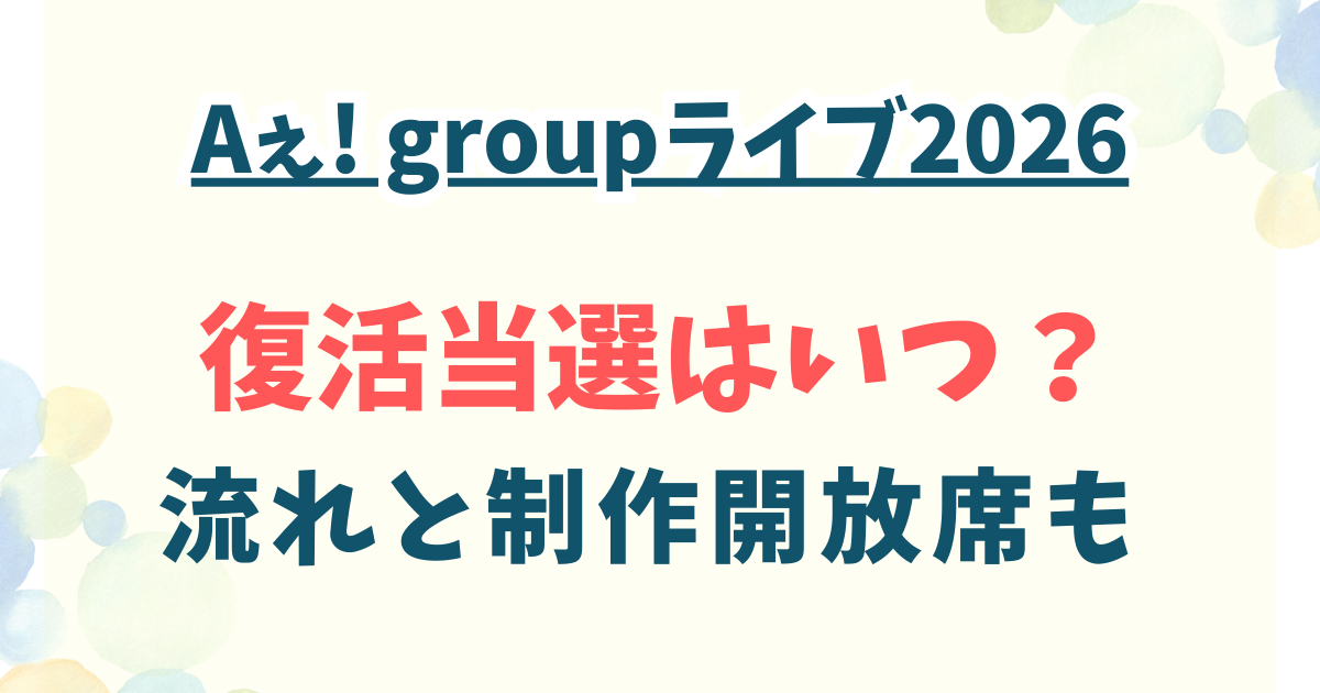 「Aぇ! groupライブ2026復活当選はいつ?流れと制作開放席も解説」まとめ